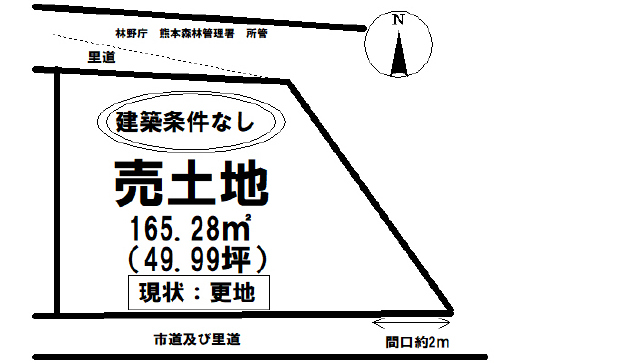 建築条件なし、現況渡し、下水道、南面道路、側溝、プロパンガス、上水道